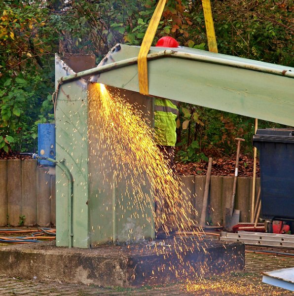 Wand 3 Abbau des Werkstattkrans, Einpacken der Exponate (1)