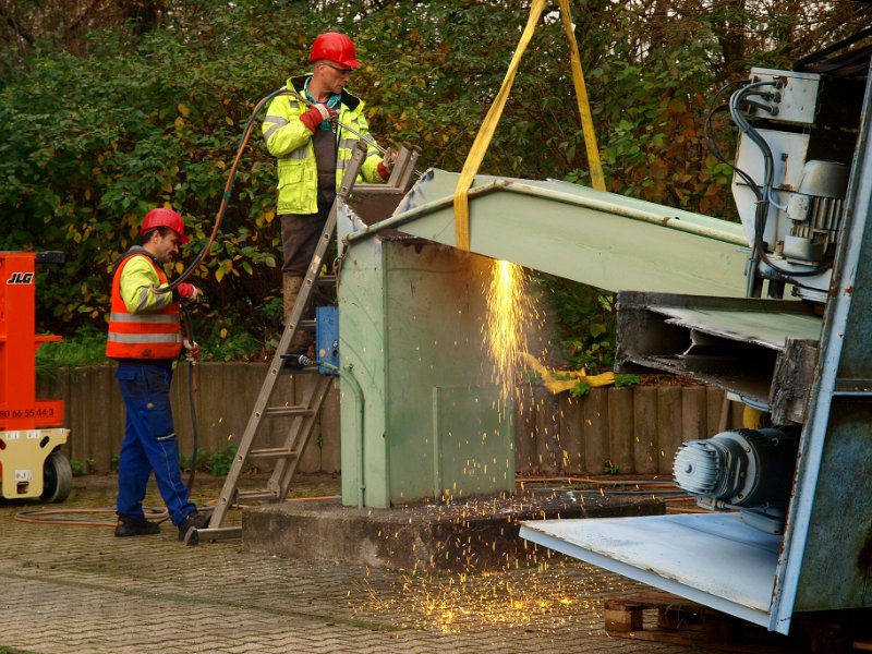 Abbau des Werkstattkrans vor dem Museum