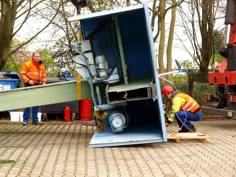 Abbau des Werkstattkrans vor dem Museum