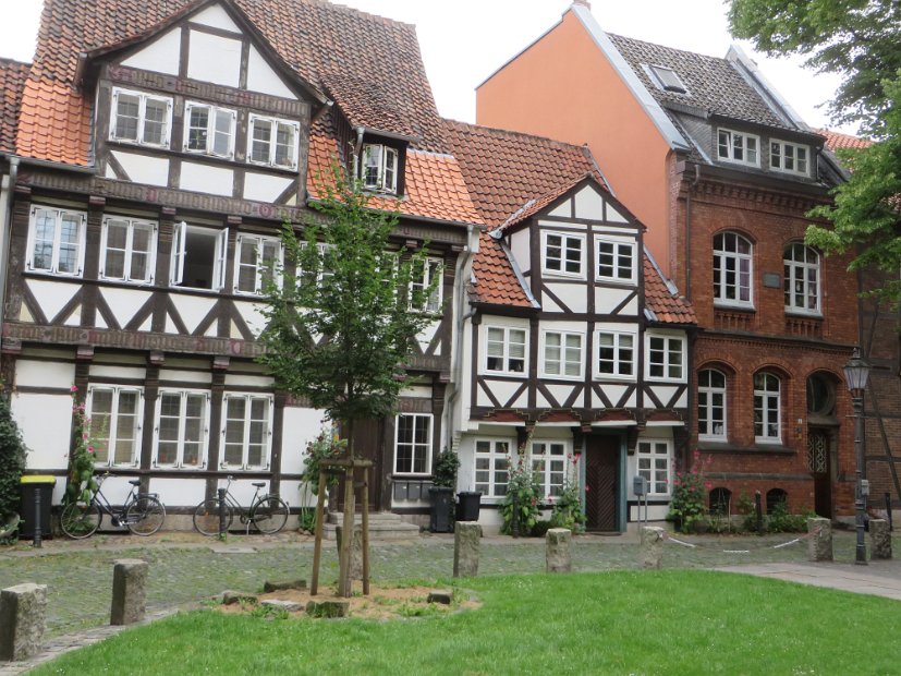 Gemischte gemeindliche Fachwerrkhaeuser an der Kirche St. Magni