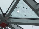 die Atrium-Scheiben durch gezielten Steinschlag zerstören.